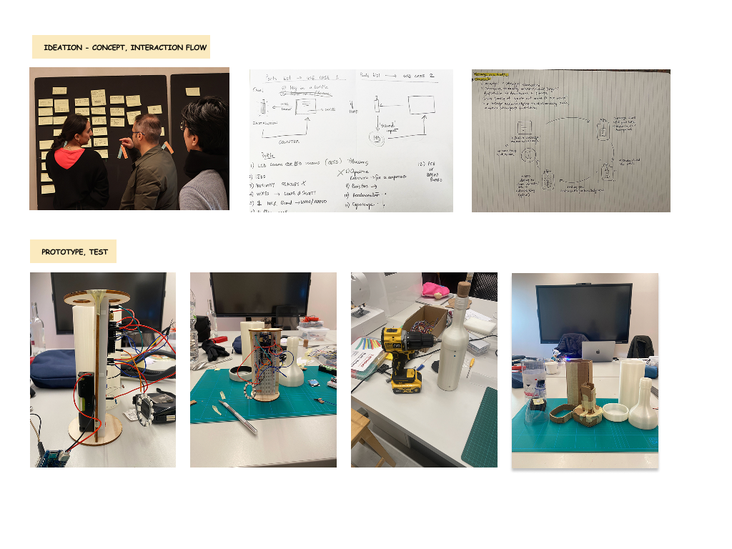 carefully crafted bottle. Everytime someone picks up the bottle, the message changes and a blue light appears